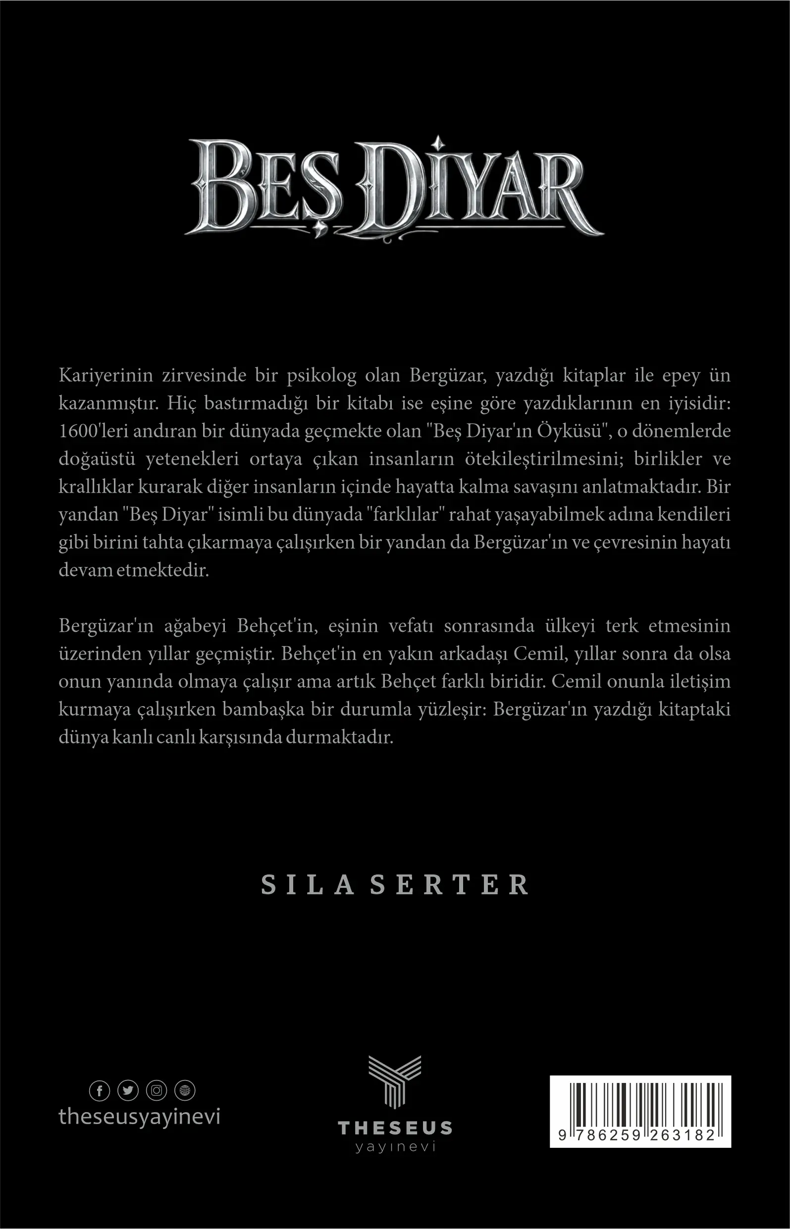 Kariyerinin zirvesinde bir psikiyatr olan Bergüzar, yazdığı kitaplar ile epey ün kazanmıştır. Hiç bastırmadığı bir kitabı ise eşine göre yazdıklarının en iyisidir: 1600'leri andıran bir dünyada geçmekte olan "Beş Diyar'ın Öyküsü", o dönemlerde doğaüstü yetenekleri ortaya çıkan insanların ötekileştirilmesini; birlikler ve krallıklar kurarak diğer insanların içinde hayatta kalma savaşını anlatmaktadır. Bir yandan "Beş Diyar" isimli bu dünyada "farklılar" rahat yaşayabilmek adına kendileri gibi birini tahta çıkarmaya çalışırken bir yandan da Bergüzar'ın ve çevresinin hayatı devam etmektedir.