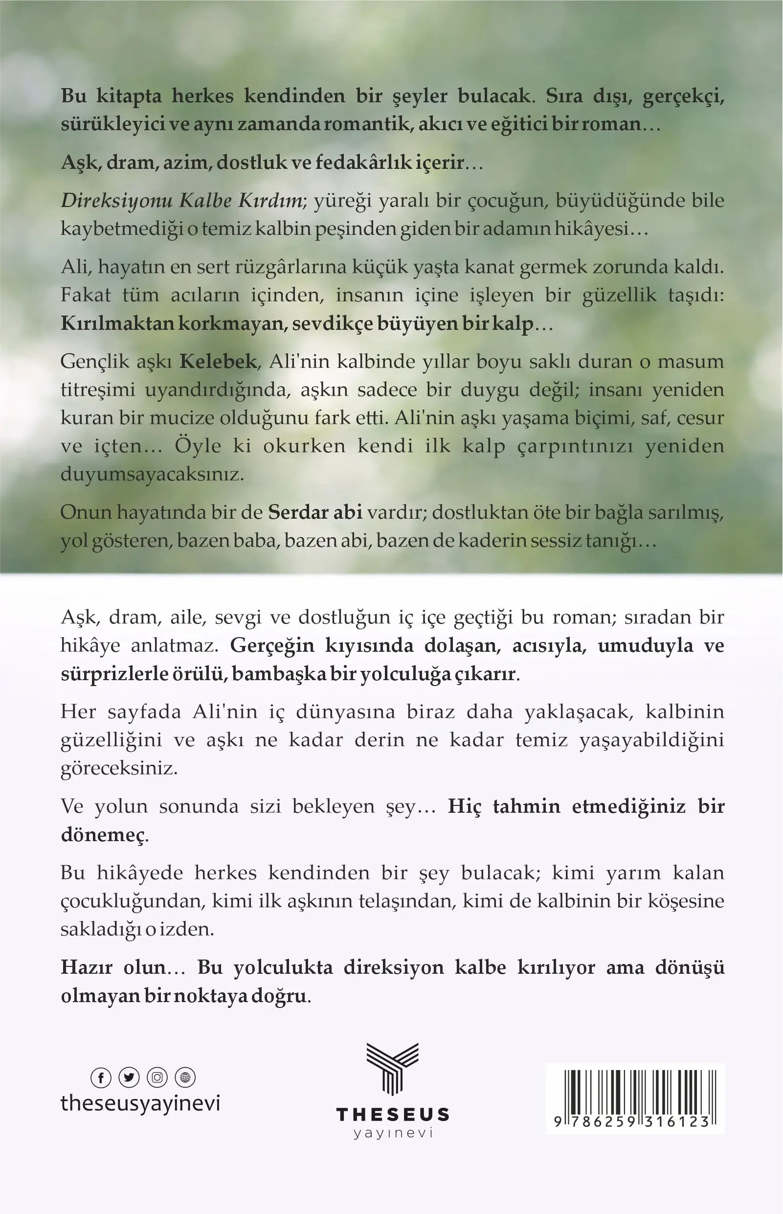 Aşk, dram, aile, sevgi ve dostluğun iç içe geçtiği bu roman; sıradan bir hikâye anlatmaz. Gerçeğin kıyısında dolaşan, acısıyla, umuduyla ve sürprizlerle örülü, bambaşka bir yolculuğa çıkarır.