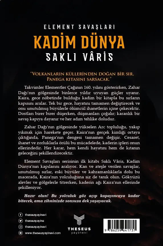 Element Savaşları serisinin ilk kitabı Saklı Vâris, Kadim Dünya’nın kapılarını aralıyor. Kan ve ateşle verilen savaşlar, unutulmuş sırlar, eski büyüler ve kahramanlıklarla dolu bu macerada, Kaira’nın yolculuğuna siz de tanık olun. Gökyüzü alevler ve gölgelerle titrerken, kaderin ağı Kaira’nın ellerinde şekilleniyor.