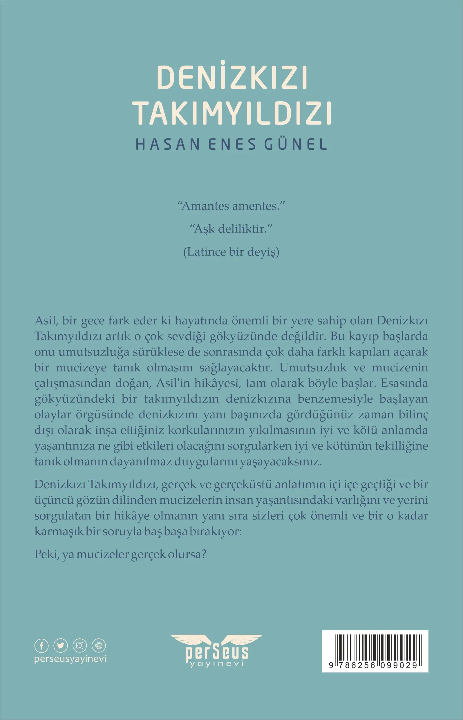 Denizkızı Takımyıldızı, gerçek ve gerçeküstü anlatımın içi içe geçtiği ve bir üçüncü gözün dilinden mucizelerin insan yaşantısındaki varlığını ve yerini sorgulatan bir hikâye olmanın yanı sıra sizleri çok önemli ve bir o kadar karmaşık bir soruyla baş başa bırakıyor: