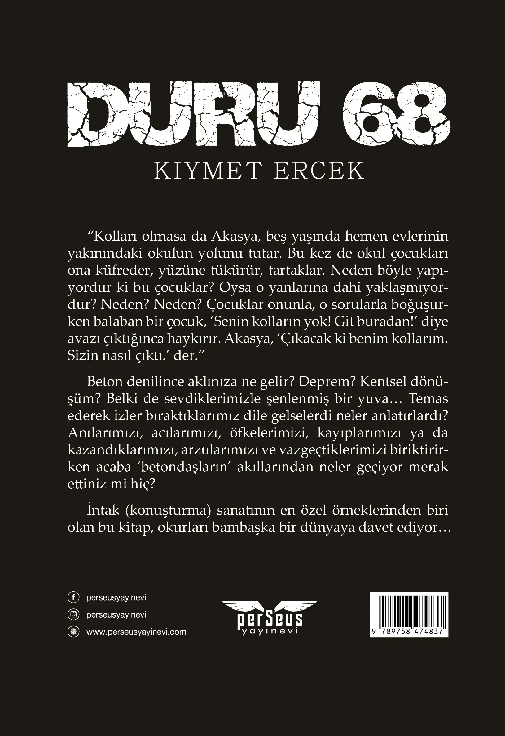 “Kolları olmasa da Akasya, beş yaşında hemen evlerinin yakınındaki okulun yolunu tutar. Bu kez de okul çocukları ona küfreder, yüzüne tükürür, tartaklar. Neden böyle yapıyordur ki bu çocuklar? Oysa o yanlarına dahi yaklaşmıyordur? Neden? Neden? Çocuklar onunla, o sorularla boğuşurken balaban bir çocuk, ‘Senin kolların yok! Git buradan!’ diye avazı çıktığınca haykırır. Akasya, ‘Çıkacak ki benim kollarım. Sizin nasıl çıktı.’ der.”