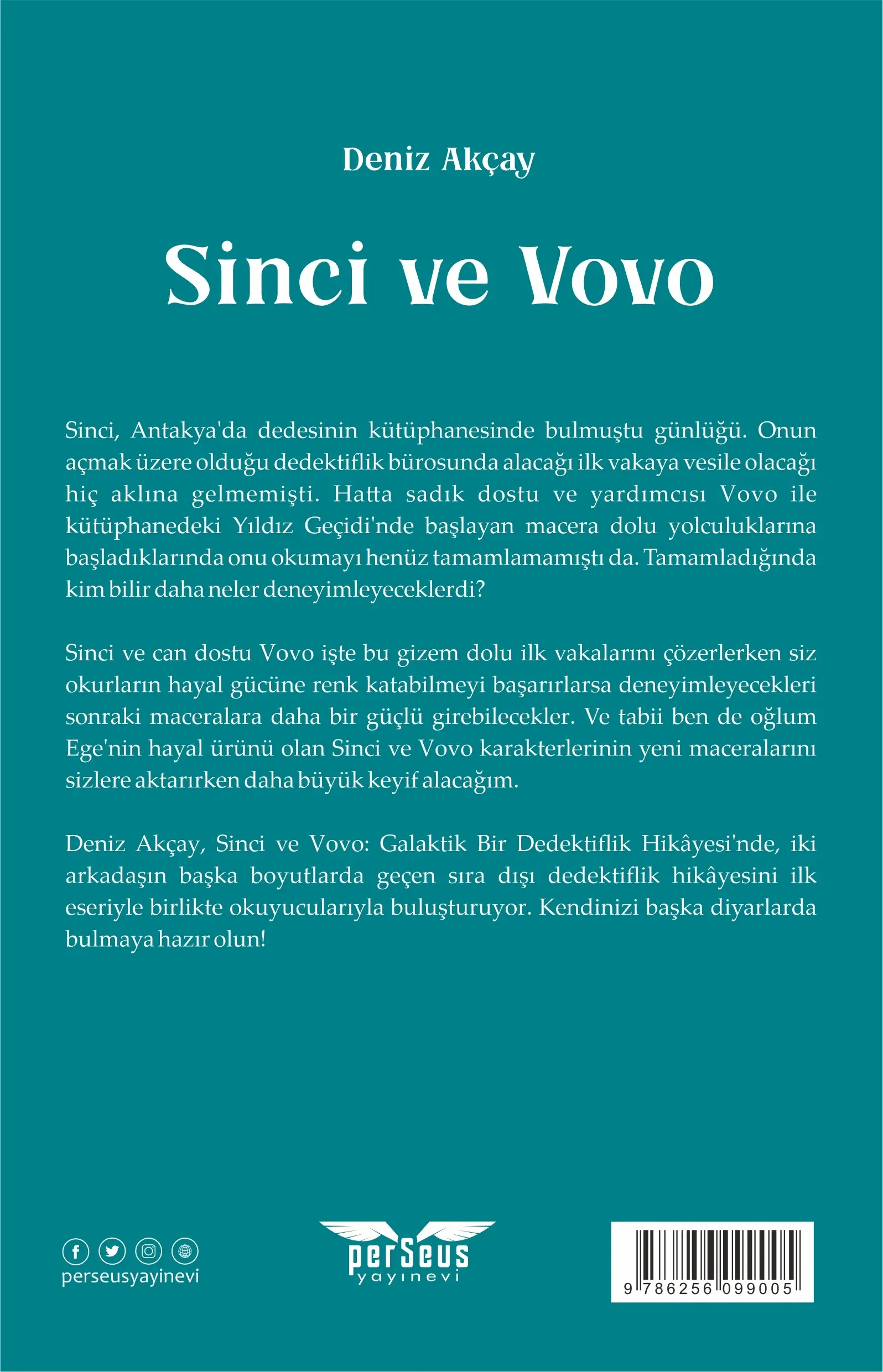 Sinci ve can dostu Vovo işte bu gizem dolu ilk vakalarını çözerlerken siz okurların hayal gücüne renk katabilmeyi başarırlarsa deneyimleyecekleri sonraki maceralara daha bir güçlü girebilecekler. Ve tabii ben de oğlum Ege'nin hayal ürünü olan Sinci ve Vovo karakterlerinin yeni maceralarını sizlere aktarırken daha büyük keyif alacağım.
